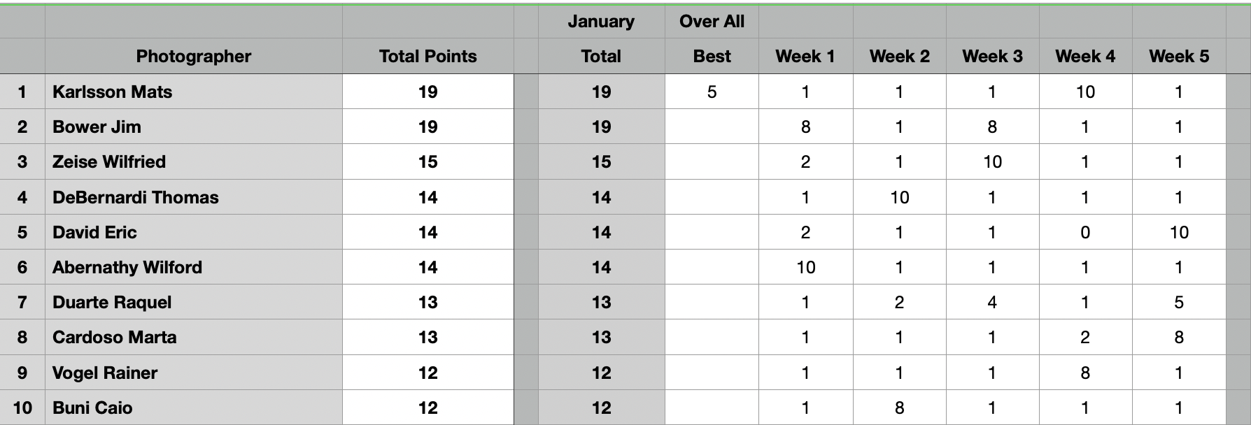 I was just informed by Jack De Kok that his winning images was a copy of a photo he had on his wall. He came clean and was honest about it. He was very sorry about this. I did disqualify the image and he will get no points from week 4. The other images he had that made top ten stays as they are.